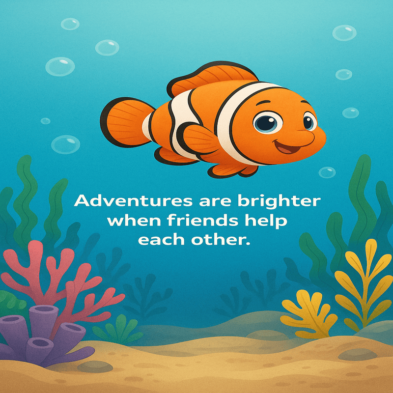 This beautifully illustrated children’s picture book follows Cody, a cheerful clownfish who loves exploring the colorful coral reef. One day, Cody hears a mysterious sound coming from a deep sea cave. Guided by curiosity—but also caution—he discovers a glowing secret hidden in the darkness. When the cave becomes unsafe, a friendly blue tang steps in to help, showing Cody that adventures are safer and brighter when friends support each other.